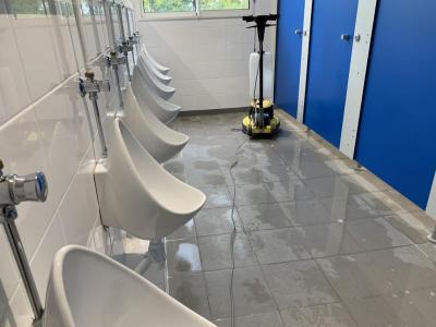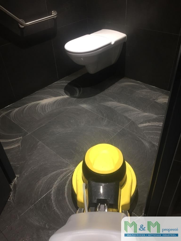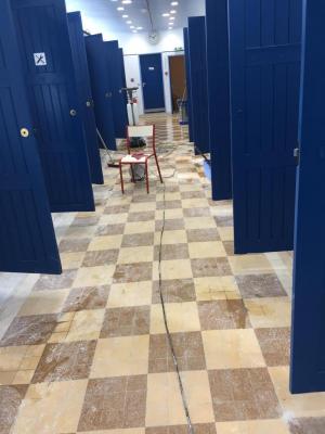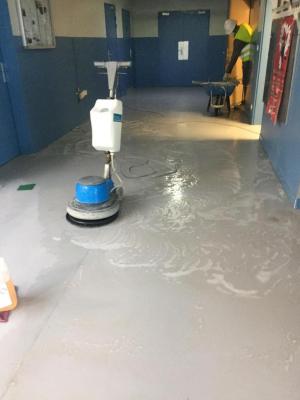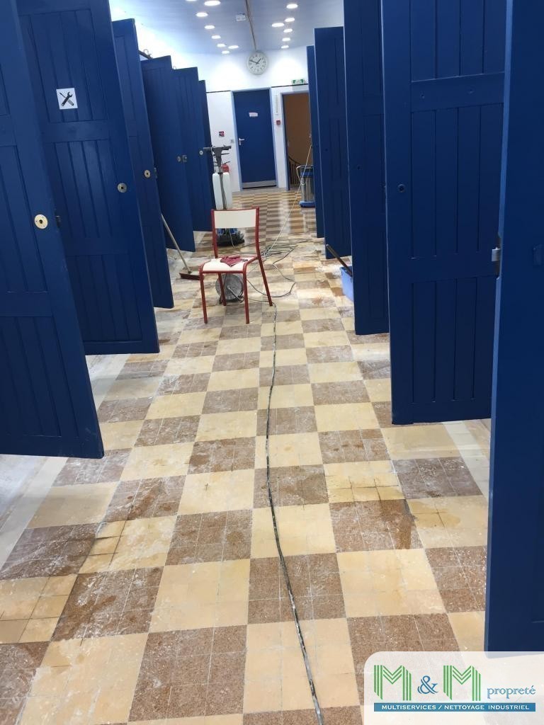 Décapage des sols carrelés avec mono-brosse / auto-laveuse